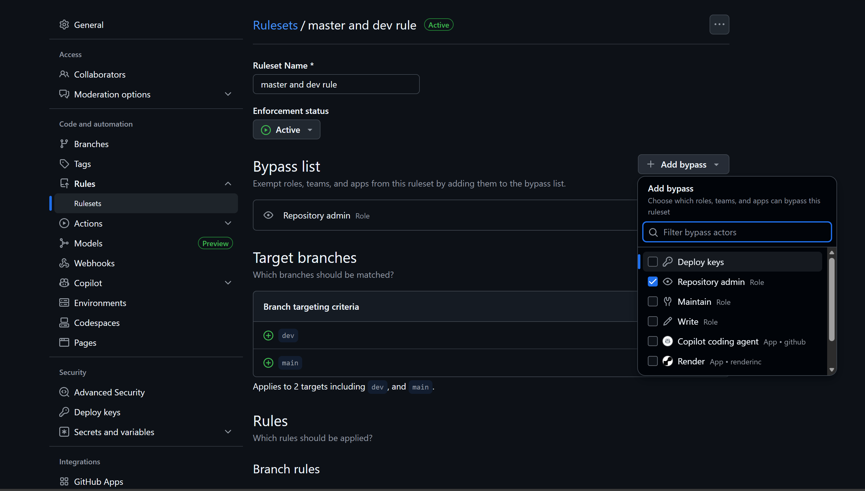 Bước 4: Thêm các quy tắc bảo vệ vào nhánh